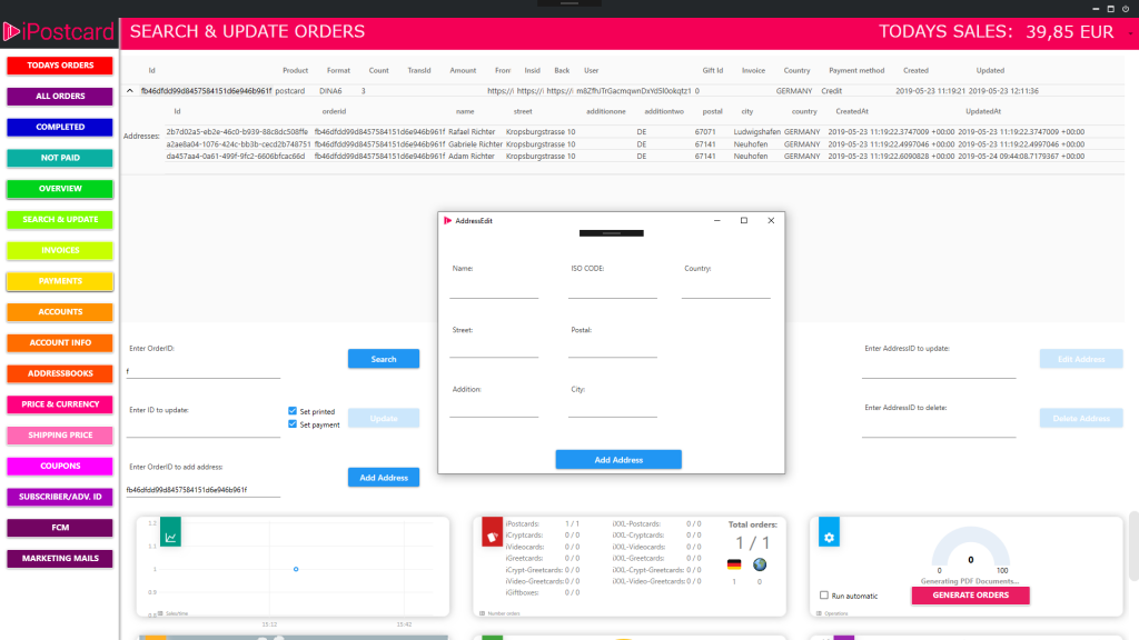 - The iPostcard Management System streamlines various administrative and operational tasks, enabling efficient management of orders, payments, customers, and marketing efforts.