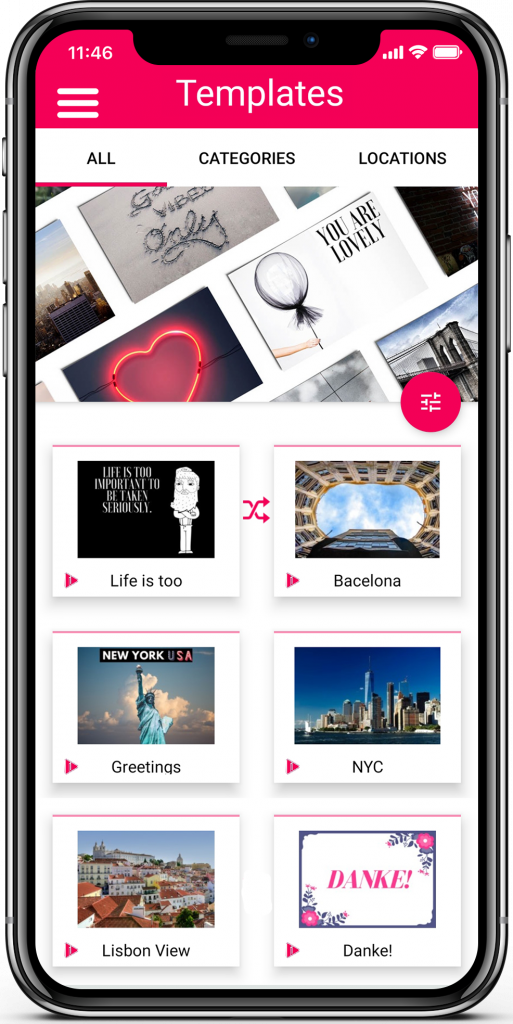 To display the template gallery within the app, an API call is made to the backend. The response from the API call is in JSON format and contains all the necessary information to populate the gallery in the app. The gallery consists of up to 1200 self-designed template images, most of which are created using Photoshop.